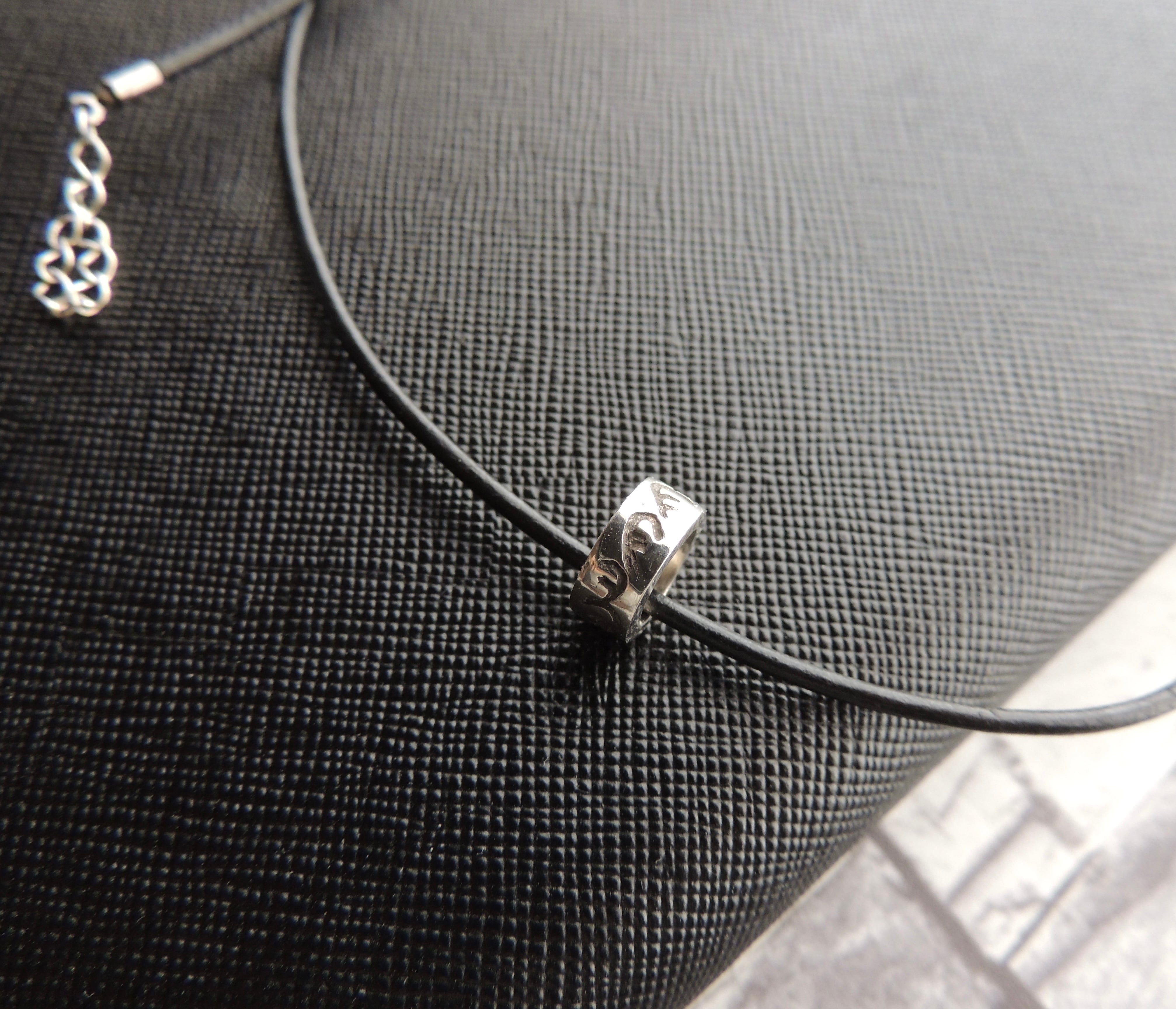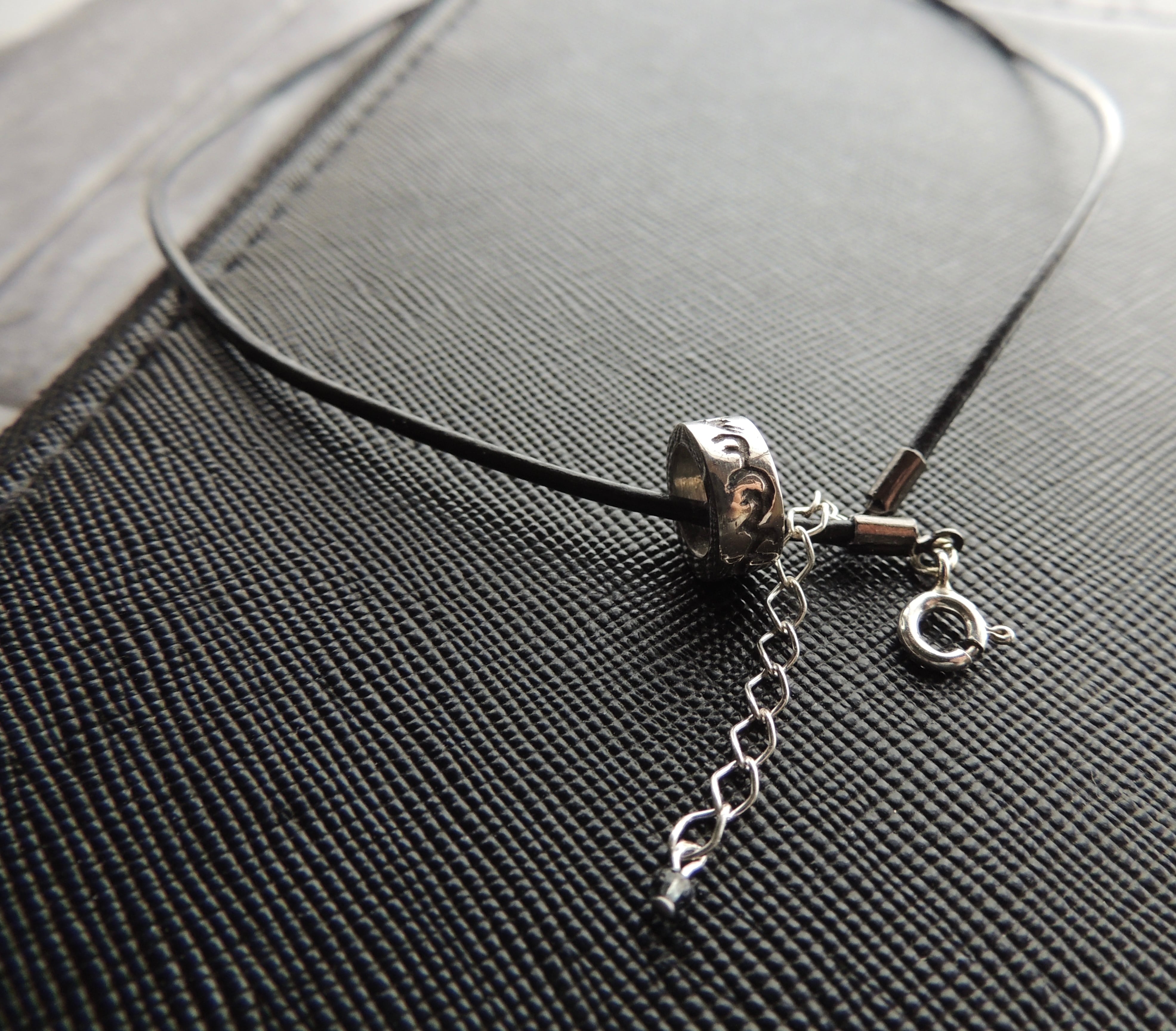このロンデルは純銀製で、小さいながらも1つ1つ手彫りいぶし模様を入れ存在感があります。独立してネックレスとしてもお使いいただけます。
